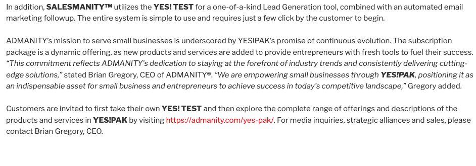 To see a sample of what an actual press release looks like on a news site (sites will vary in appearance)